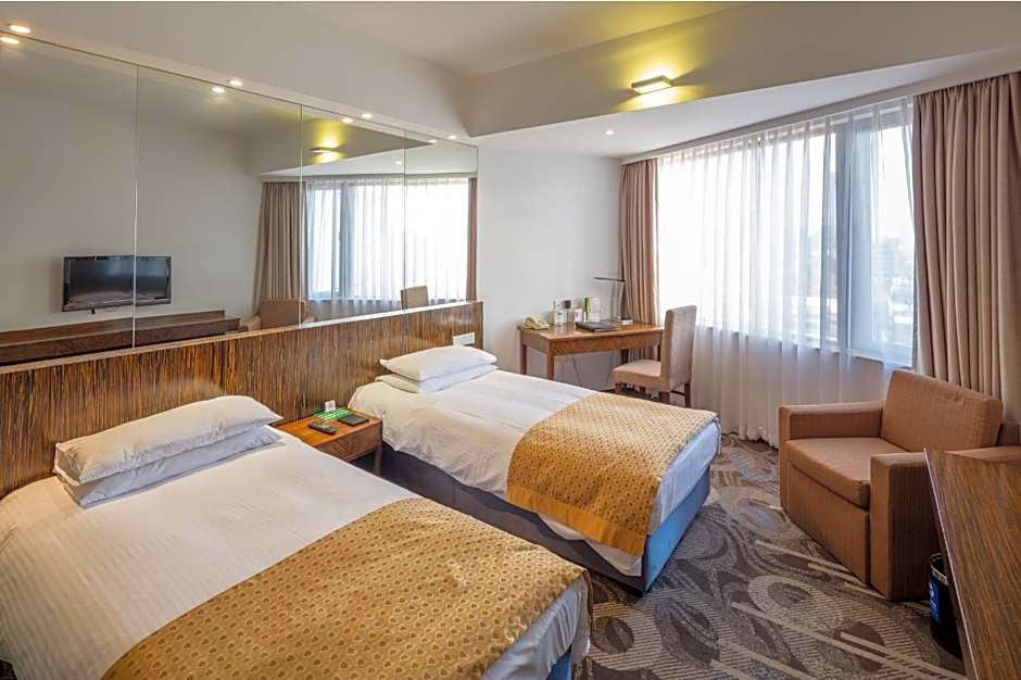 This twin/double room features a mini-bar, air conditioning and bathrobe.